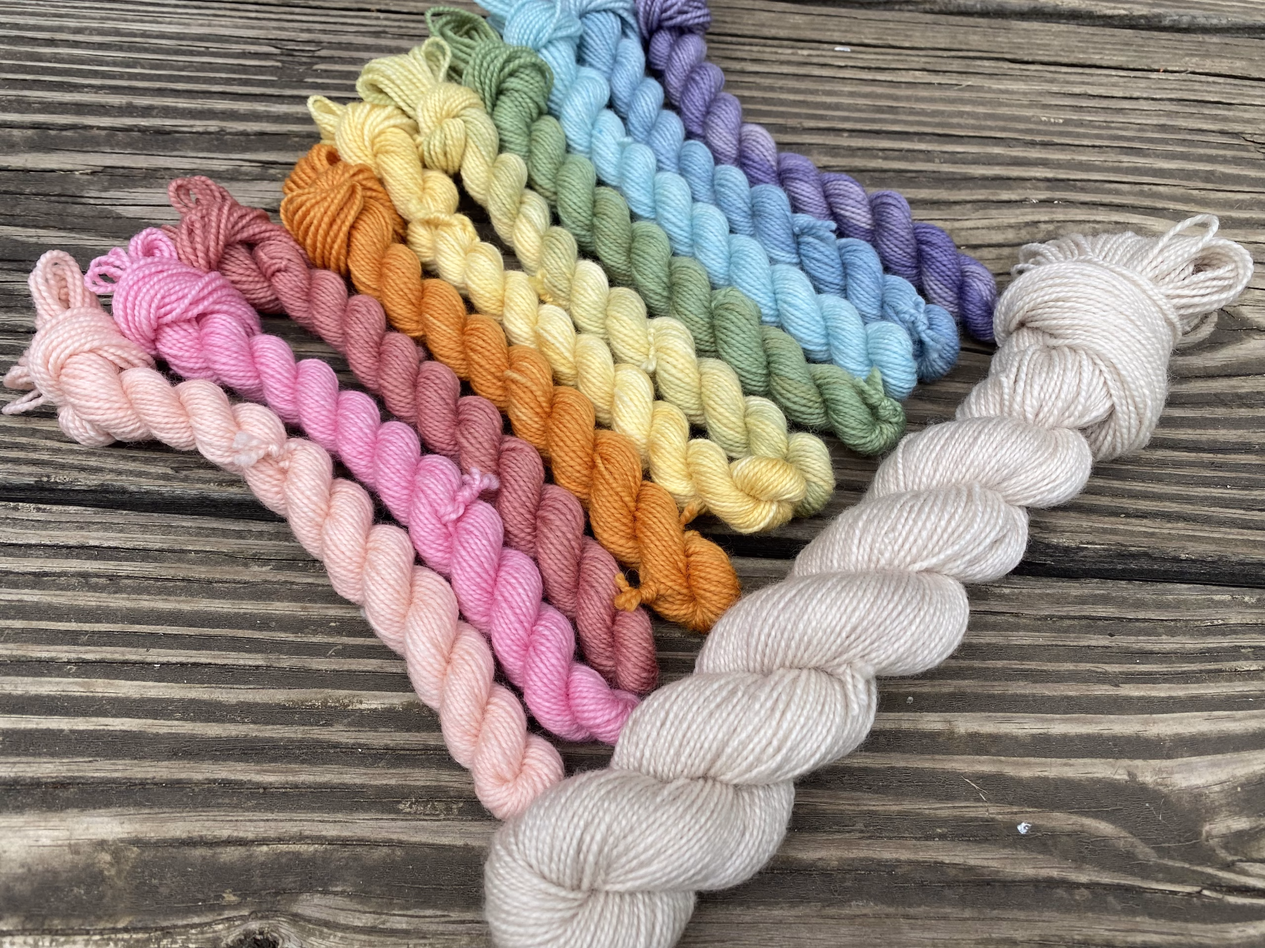 *Ten 10 gram mini skeins (totalling 100 grams/400 yards) of Berry Tough Sock in one of a kind tonal/solid colors